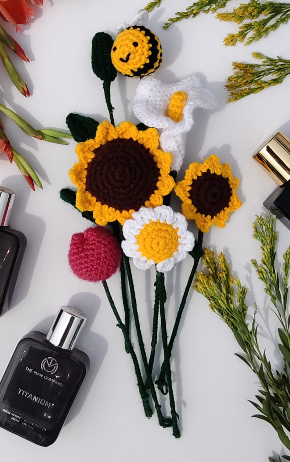 Every element is handmade with love using soft, high-quality yarn that ensures durability and a cozy feel. The bouquet is a wonderful long-lasting alternative to fresh flowers—no watering, no wilting!
