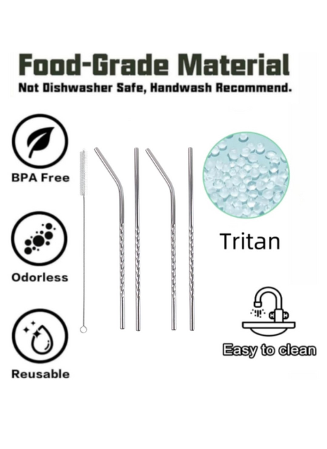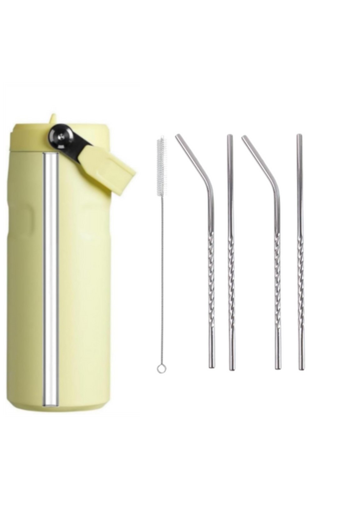 Set of 4 Stainless Steel Straws with Cleaning Brush (2 Straight + 2 Bent)